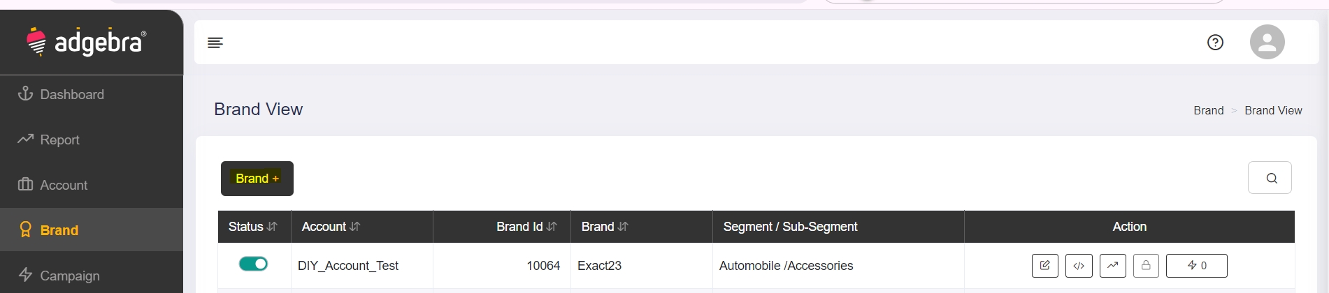 Yes, Adgebra allows to creation of multiple brands or campaigns within a single account. You can create multiple brand under single account by clicking on brand+ button above the brand view screen. For multiple campaign creation you can click on campaign+ button Screenshot for reference