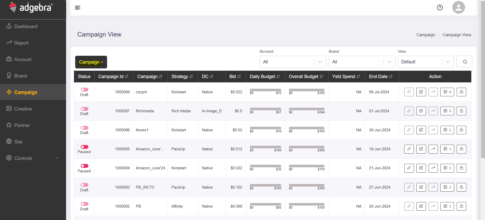 Adgebra does not delete any associated accounts. If you wish to stop using your account, you can send a request to your account manager to deactivate it. Adgebra retains all your past data, ensuring it remains accessible.